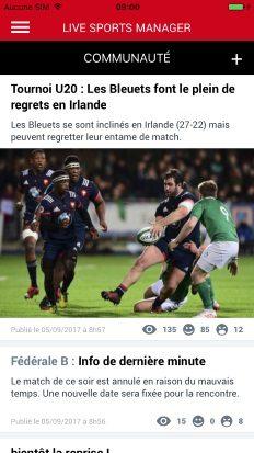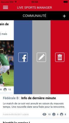 - Le menu Communauté vous permet d’envoyer des actualités sur le club à l’ensemble des personnes ayant téléchargé l’application Supporter.