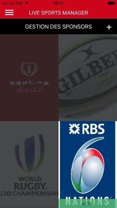 - Le bouton Sponsors permet de remplacer la vidéo de lancement de l’application Supporter (grand public) par une publicité de votre choix. Par défaut nous avons intégré une vidéo d’animation du logo de votre club.