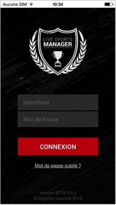 Vous avez reçu par courriel un lien vous invitant à télécharger votre application Live Sports Manager sur l’AppStore ou Google Play. Cliquez dessus pour l’installer sur votre téléphone mobile.