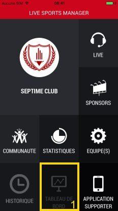- Le menu Tableau de bord permet de suivre l'activité des supportes autour de l'application du club.