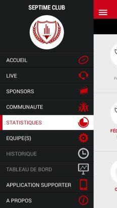 - Le menu Application Supporter permet de lancer directement l'application supporter du club depuis votre application Live Sports Manager.