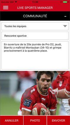 - Le menu Communauté vous permet d’envoyer des actualités sur le club à l’ensemble des personnes ayant téléchargé l’application Supporter.