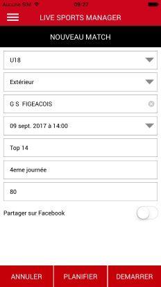 Nous vous conseillons de créer vos matchs avant d’avoir à lancer le live afin de prévenir les sympathisants de la possibilité de vous suivre en direct.
