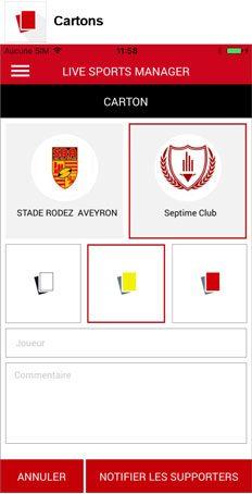 Vous avez également la possibilité de compléter les informations à afficher sur l’application Supporter en saisissant le nom du joueur qui a réussi l’action (ou a été sanctionné pour les cartons). Vous pouvez également insérer un commentaire. Ce champ texte est limité à 250 caractères.