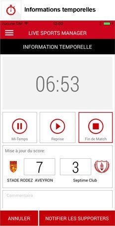 vous permet de renseigner la mi-temps, la reprise du match et la fin de rencontre.