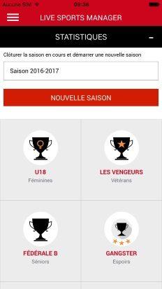 Allez sur l'écran d'accueil de la rubrique statistiques et cliquez sur le + afin de démarrer une nouvelle saison. Il vous faudra saisir un nom pour la saison à clôturer. Attention cette opération est irréversible (sauf en nous contactant) afin de réinitialiser le calcul des statistiques des équipes.