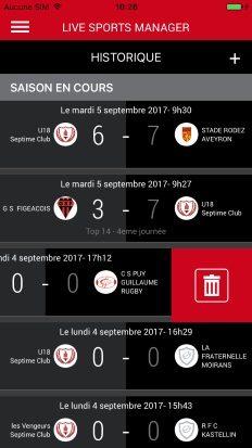 Vous avez également la possibilité de supprimer un match (en cas d'erreur). Pour cela, il vous suffit de faire glisser le match en question vers la gauche. Vous verrez alors apparaitre l'option de suppression. Un message vous demandera de confirmer cette action.