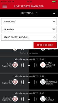 Si des matchs sont déjà programmés, en cliquant sur Live vous arrivez sur le calendrier des matchs du club passés, en cours ou à venir.